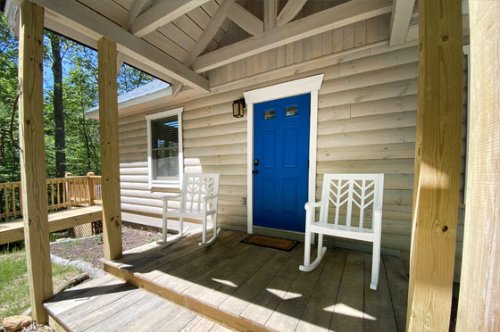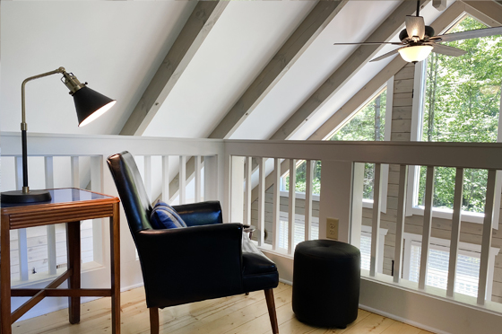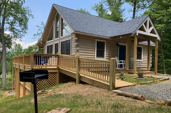 Blue Ridge Rustic Modern is a cabin like no other. Its Eastern White Pine Timbers stained a semi-transparent gray allow the grain to peak through it’s sleek aesthetic: rustic and modern. The forest of Tulip Poplar, White Pine, Shagbark Hickory, Sweet Birch, Sycamore, Dogwood, Cherry, and Redbud are selectively thinned allowing dramatic views of the Blue Ridge and Shenandoah National Park.