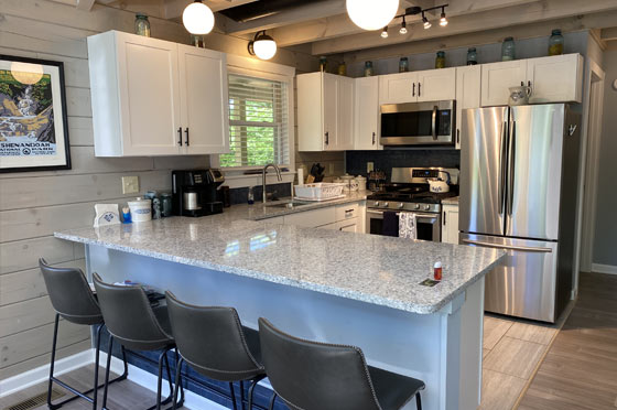 The cabin is dog friendly with two chain leads for “potty-time.” Recreation includes hot tub, pool table, game room, four televisions, stereo with record player and cd player, fire pit, cornhole, horseshoes, tire swing, tree porch-swing, antique redwood patio lounging furniture on the ample deck for stargazing and a back porch with a bird feeder for live entertainment. Hiking trails are right outside the back door, and the Swift Run Gap entrance to Shenandoah National Park is less than a ten-minute drive, placing you almost dead center in the park.