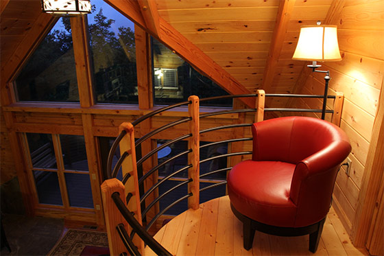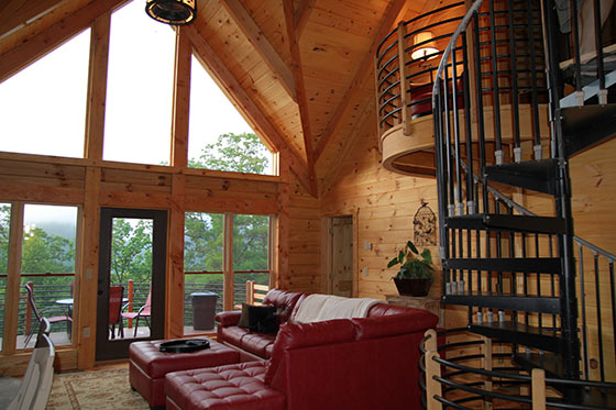When building and naming this extraordinary cabin, we thought it a great opportunity to let you know that we recognize that this mountain and everything about it is a collaboration. We took your thoughts to heart and created a very special cabin with everything you asked for. Picturesque mountain views, with a beautiful deck on which to lounge away the day. Cozy nooks and crannies for reading and knitting. A grand spiral staircase summiting at the master bedroom (the perfect place for bridal pictures) and a steam sauna shower that along with a 4 person hot tub, insists on relaxation and rejuvination. For our hockey fans - an air hockey table is in the gameroom and 3 TVs to watch "The Game" from wherever you are. And 4 bedrooms for all your friends and family. Many guests have already started traditions here, coming back for anniversaries, weddings, holidays and as one of our brides reminded us "of course, the steam shower."