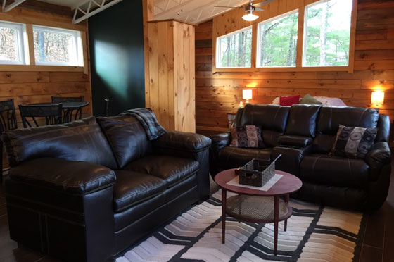 The race of the everyday has a tendency to get even the best of us down, sending us forth to try to find a little reprieve. Come and catch your breath as you unwind in this lovely cabin for two. A stay here in our newly designed “Second Wind” will surely revive your spirit and mind. It combines the best of a stay in the woods with the comforts of home, a perfect rustic chic setting. The cabin affords the same space as the other one-bedroom cabins, but the open floor plan gives you room to stretch out and breathe. Drink in the sunlight filtering through the large wall of windows as you read that book you’ve been meaning to read or soak up the gorgeous view of the whispering forest and trickling stream. Soothe your aching muscles in the hot tub and allow your stress to melt away. “Second Wind” has everything you need to make sure you go back home refreshed, renewed, and rejuvenated, with the songs of the mountains in your head.