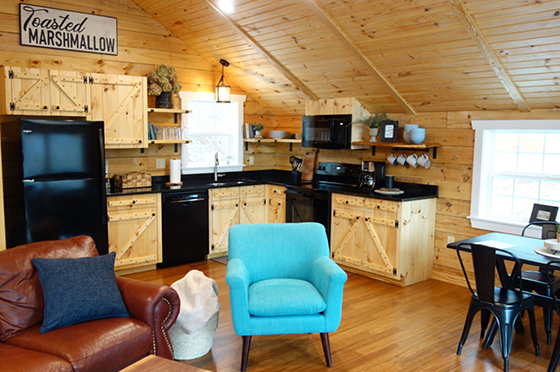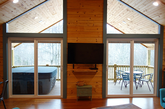 Toasted Marshmallow log cabin holds beauty in every season. It is nestled on a mountainside overlooking several ponds. While dining or relaxing on one of the double decks, you may hear the soothing song of South River below. Shenandoah National Park is within a twenty minute drive.