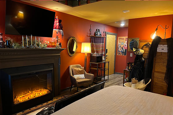 Our lodge is the hub of all things Lydia! We currently offer 11 rooms - each with a theme built to match your personality. Each room Offers mountain views to take your breath away! Cozy up by the wood burning fireplace in the beautiful mezzanine and get some much needed relaxation! Bring along your furry friend as long as the room is pet friendly!!